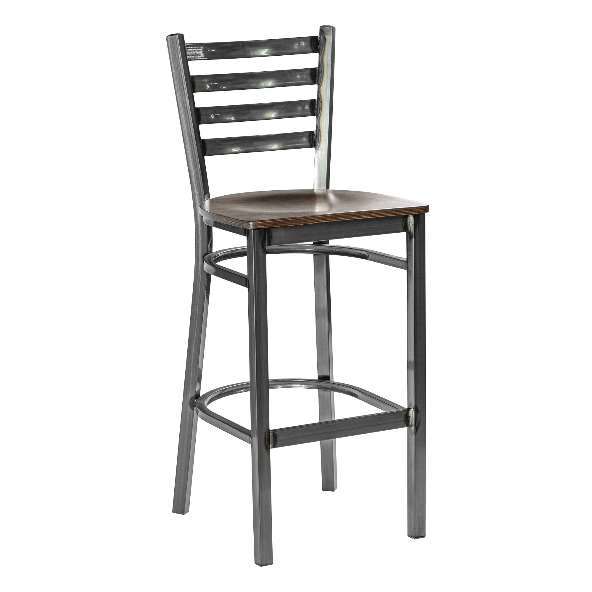 Ladder Back Barstool - Gun Metal - Walnut