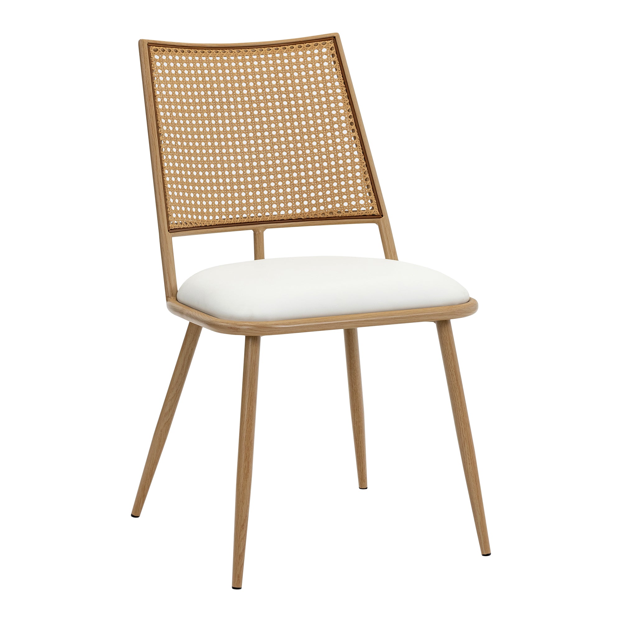 This chair is a sleek and modern piece of furniture that combines both style and comfort. It features a sturdy metal frame with a rattan back , giving it a contemporary and elegant look.